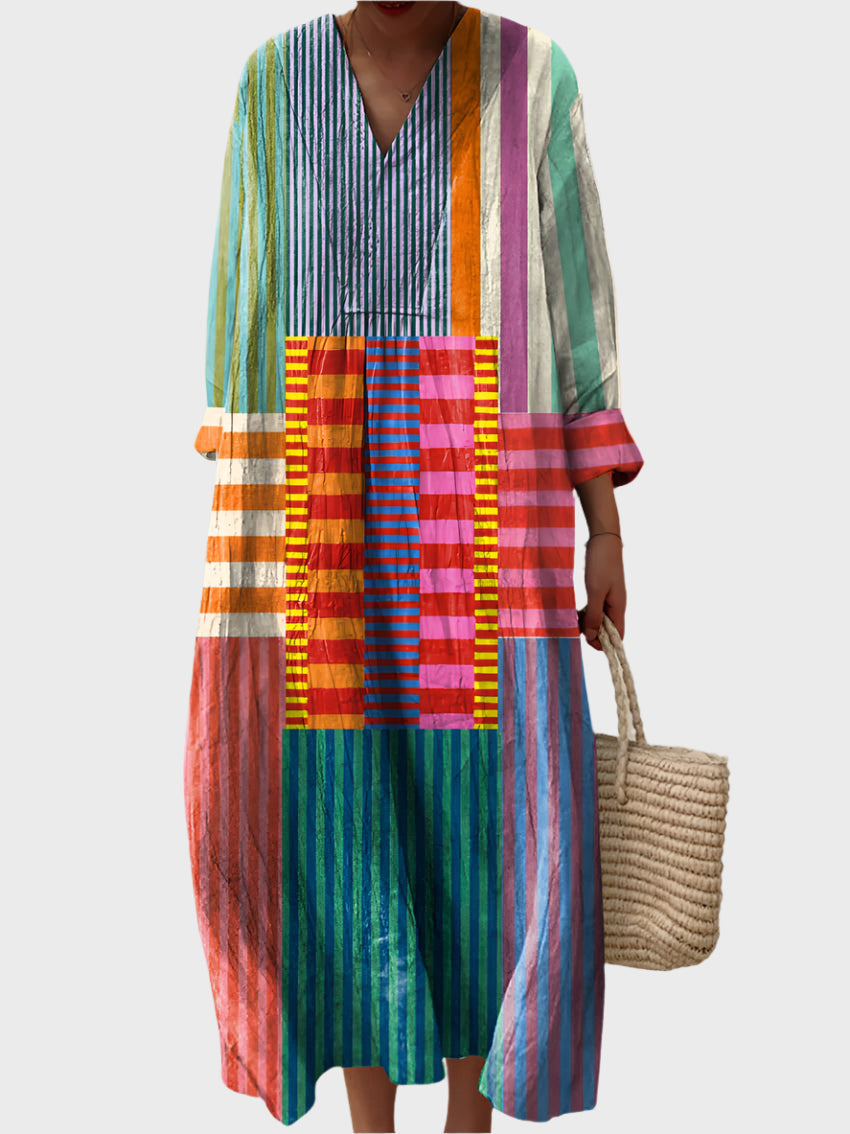 Feel like summer in this artistic dress. With bare legs on the warm sand and soft, lightweight fabric dancing in the wind, this piece brings freedom, beauty, and comfort to every step. Free and uniquely you.